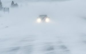 降る粉雪が、強い風にあおられる状態を言う。視界が極端に悪くなり、車の運転にも支障をきたす。吹雪と同様であるが、吹雪以上に風の強さが感じられる季語である。