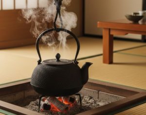 部屋の乾燥を防ぐため、蒸気を発生させること。火鉢に薬罐をかけたり、市販の電気加湿器を用いたりする。風邪の予防に有効である。