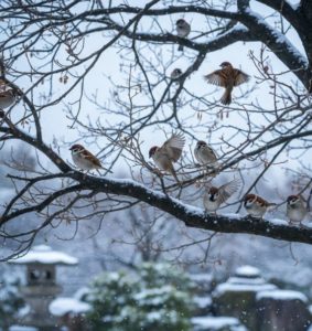 初雀(はつすずめ) 新年 季語と歳時記 【解説】 元日の雀。年改まった元日は見慣れたものが清清しく、めでたく感ぜられる。普段は見過ごしている身近な雀にも淑気がただよう。 【来歴】 『季寄新題集』(嘉永元年、1848年)に所出。 【例句】 随意随意や竹の都のはつ雀 路通「一の木戸」 青籬の霜ほろほろと初雀 松本たかし「石魂」 初雀すでにまぎるゝ瀬音かな 石橋秀野「桜濃く」