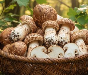 秋を代表する茸の王様。独特の芳香があり吸い物、土瓶蒸しなどにして楽しむ。近年赤松林の手入れが行き届かないため収穫が減っている。外国産のものや香りを添加したものも出回っている。