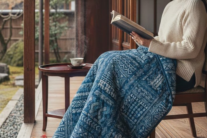 膝掛(ひざかけ)三冬 季語と歳時記 【子季語】 膝毛布、膝掛毛布、膝袋 【解説】 防寒のために膝に掛ける布。毛布、毛糸で編んだものが多い。暖房してあっても、一枚膝に掛けるだけで数段暖かく安心した心持ちになる。座り仕事の職人が使うこともあるが、通常は女性が使用することが多いようだ。