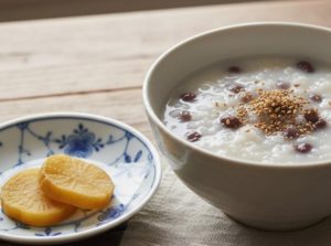 冬至粥(とうじがゆ)仲冬 季語と歳時記 【子季語】 赤豆の粥、赤柏、冬至蒟蒻、冬至酒 【解説】 冬至の日に食べる小豆粥のこと。冬至の日に柚子湯に入ったり、粥や南瓜を食べると病気にならないという言い伝えがある。 【例句】 ならざけはあからがしはの祝ひかな 季吟「山の井」 利にうときすね人酔へり冬至酒 暁台「暁台句集」