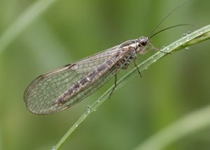 【解説】 ウスバカゲロウ科の昆虫。トンボに似て、細長い暗褐色の体に透明な羽を持つ。これの幼虫は、蟻地獄である。