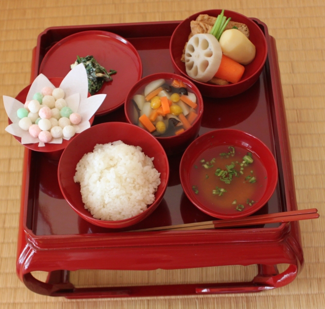 豊かなことも幸せだが、そればかりではないようだ。勢い余って鍋の蓋を落としても、またご愛嬌。その音は春を告げるシンバルのように寺中に響き渡る。(季語歳サポーター 写真=雙璧寺の彼岸のお斎膳)