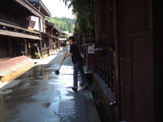 | 解説 | 暑さを和らげて涼を得るため、あるいは埃を沈めるため庭や路地、玄関、店先に散水する こと。また、その水をいう。子供にとって夏休みの夕方に庭に水を撒くことはとても楽し い仕事である。 |